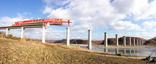 運架一體機適用於山區鐵路客運專線(橋隧相連)20m、24m、32m雙線整孔混凝土箱梁(含曲線梁、現澆梁前後的箱梁)的架設;能在鐵路客運專線混凝土箱梁預製場吊運,並能夠把混凝土箱梁從預製場地通過便道、路基、橋梁(包括鋼結構連續梁、單跨及多跨連續現澆梁等)、涵洞運至架梁工位完成架梁作業,而且對路基及橋麵不造成任何損害;可在不需要輔助設施的情況下,利用設備自身功能和輔具,進行工地轉移、調頭、吊運混凝土箱梁穿越鐵路客運專線雙線隧道,並能做到在作業過程中不會和已完成工程發生碰撞,方便快捷的完成孔梁之間的架設任務。